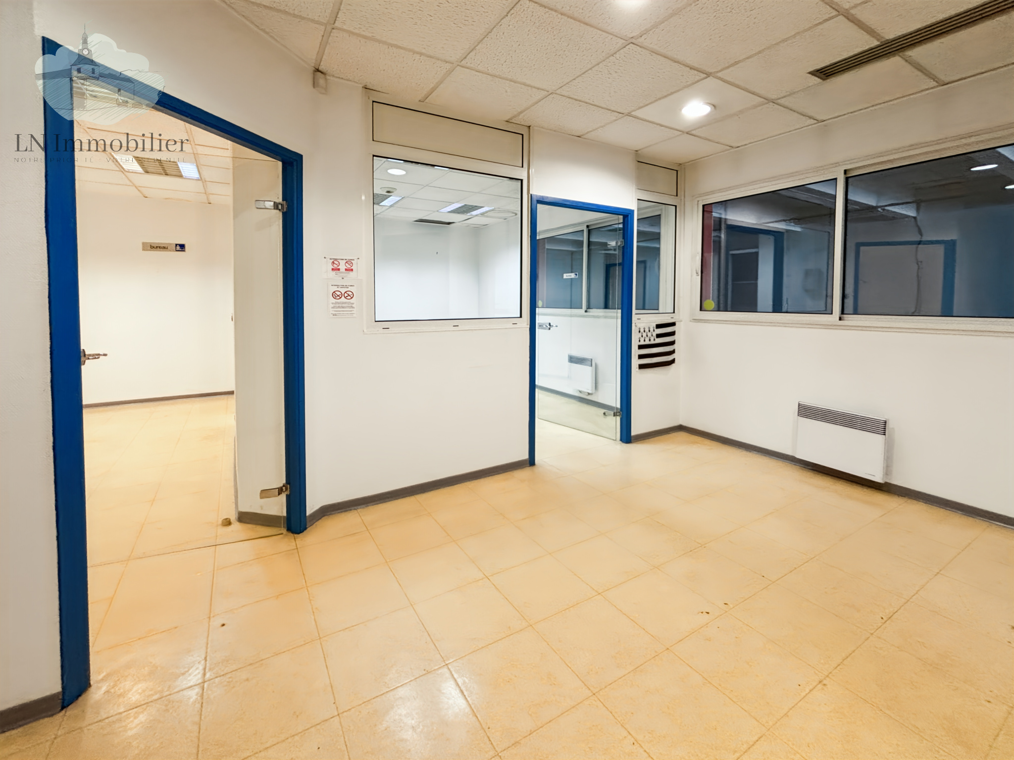 Le local est constitué de 2 bureaux communicants, 3 grandes salles de réunion, 2 autres pièces séparées dont une avec point d' eau pouvant servir de salle de pause, une douche, WC.