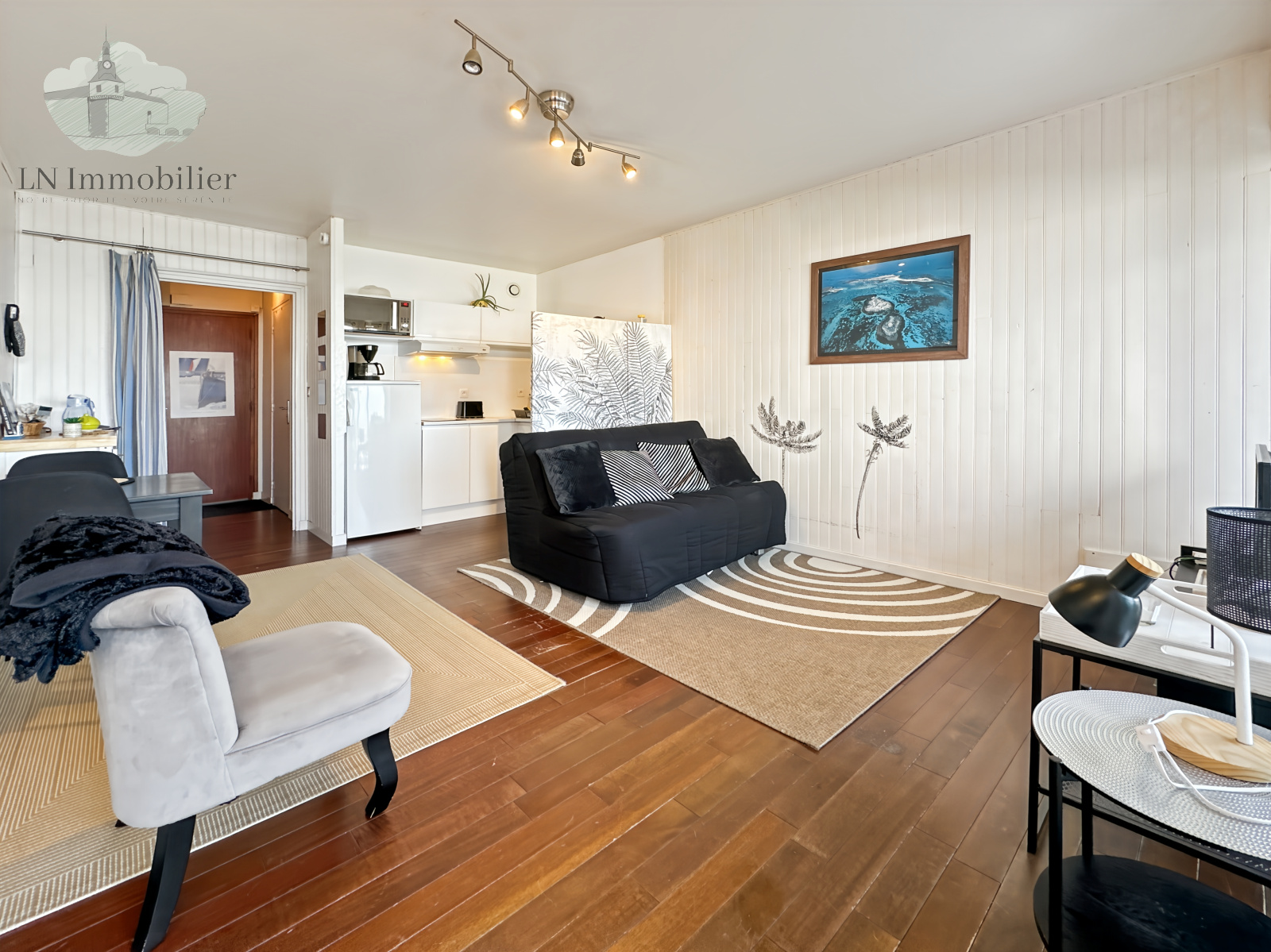 Situé en front de mer cet appartement en RDC de type T1 donnant avec vue et acces direct à l' océan se compose comme tel: Une entrée avec placard, une salle de bains avec WC, une piece de vie. Accès extérieur avec une terrasse et un espace vert surplombant la plage.