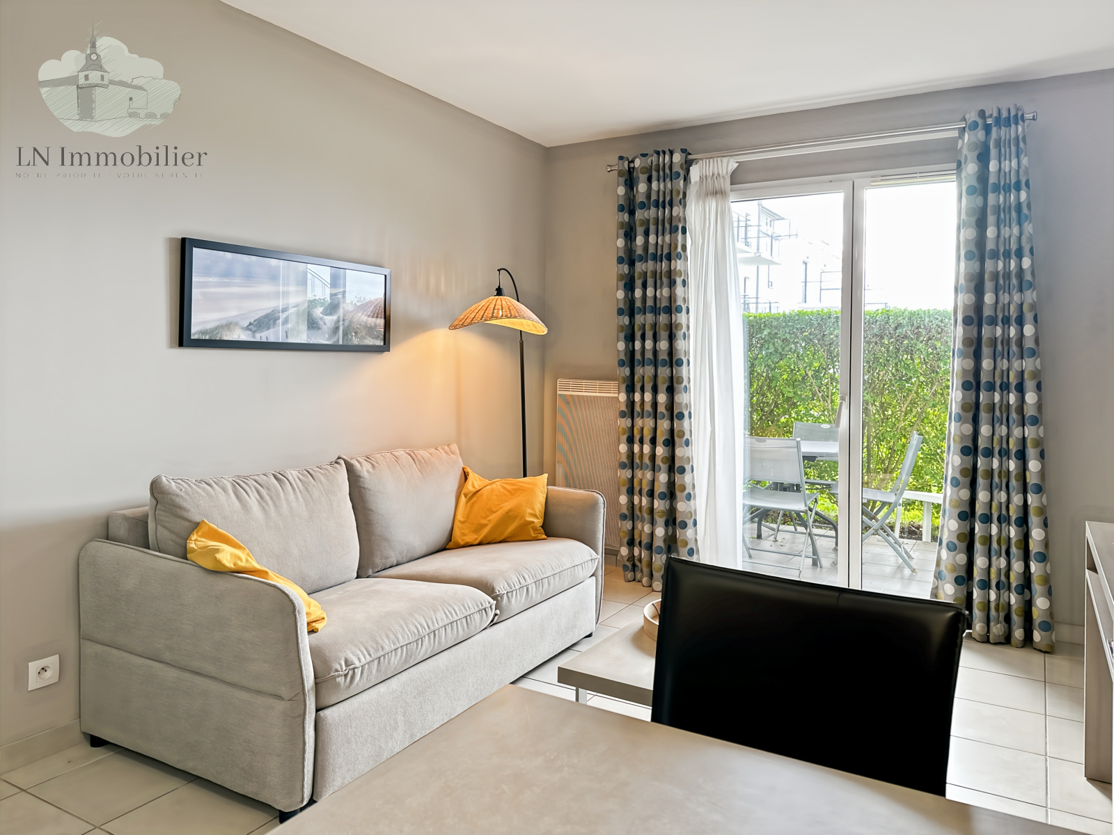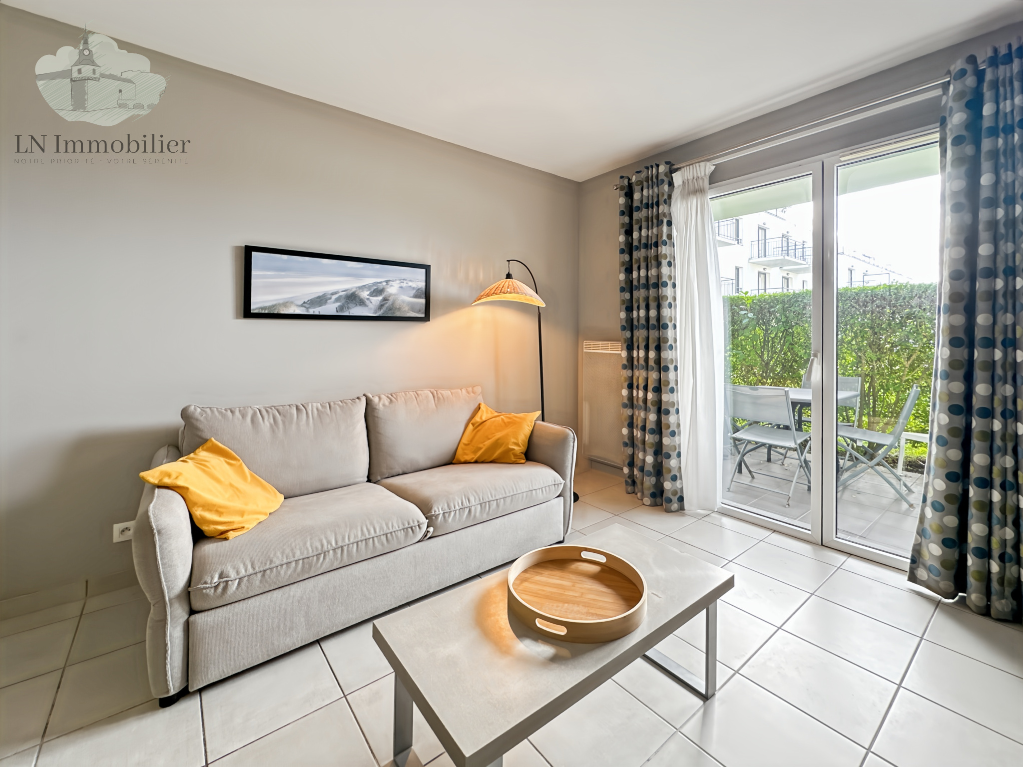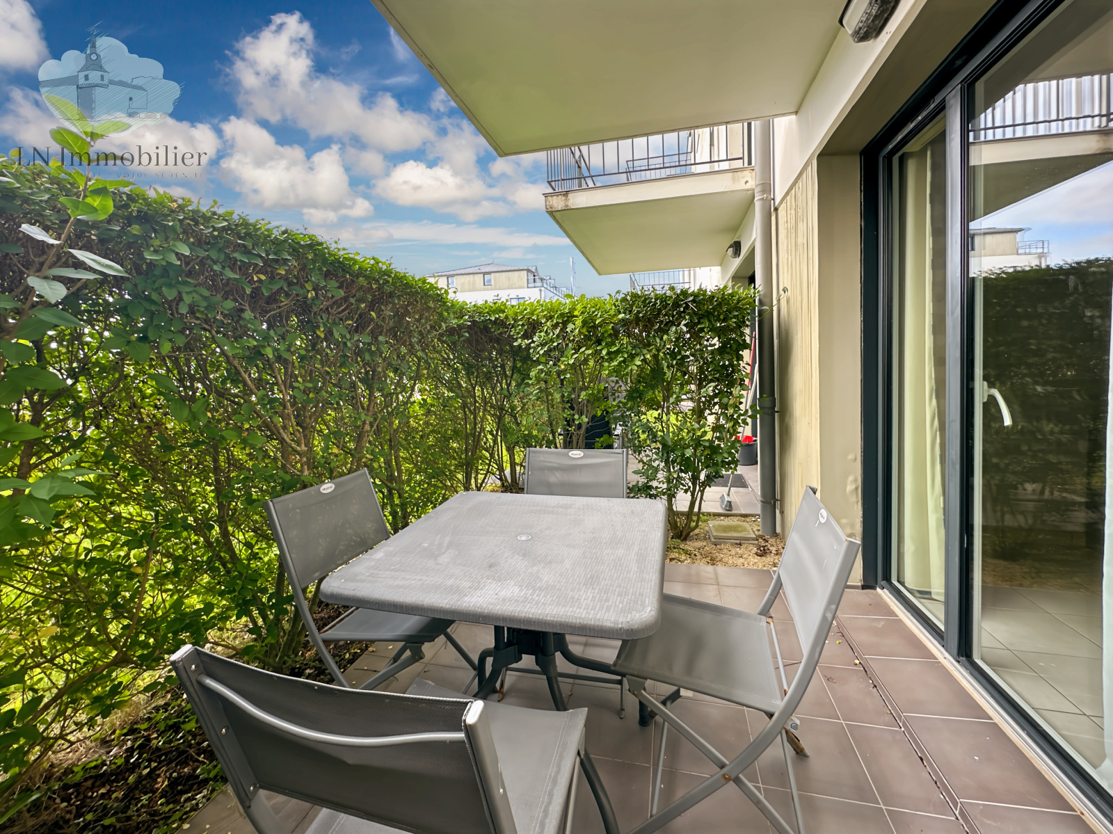 La terrasse permet un accès direct à la piscine de la résidence. Parfait pour un investissement locatif.