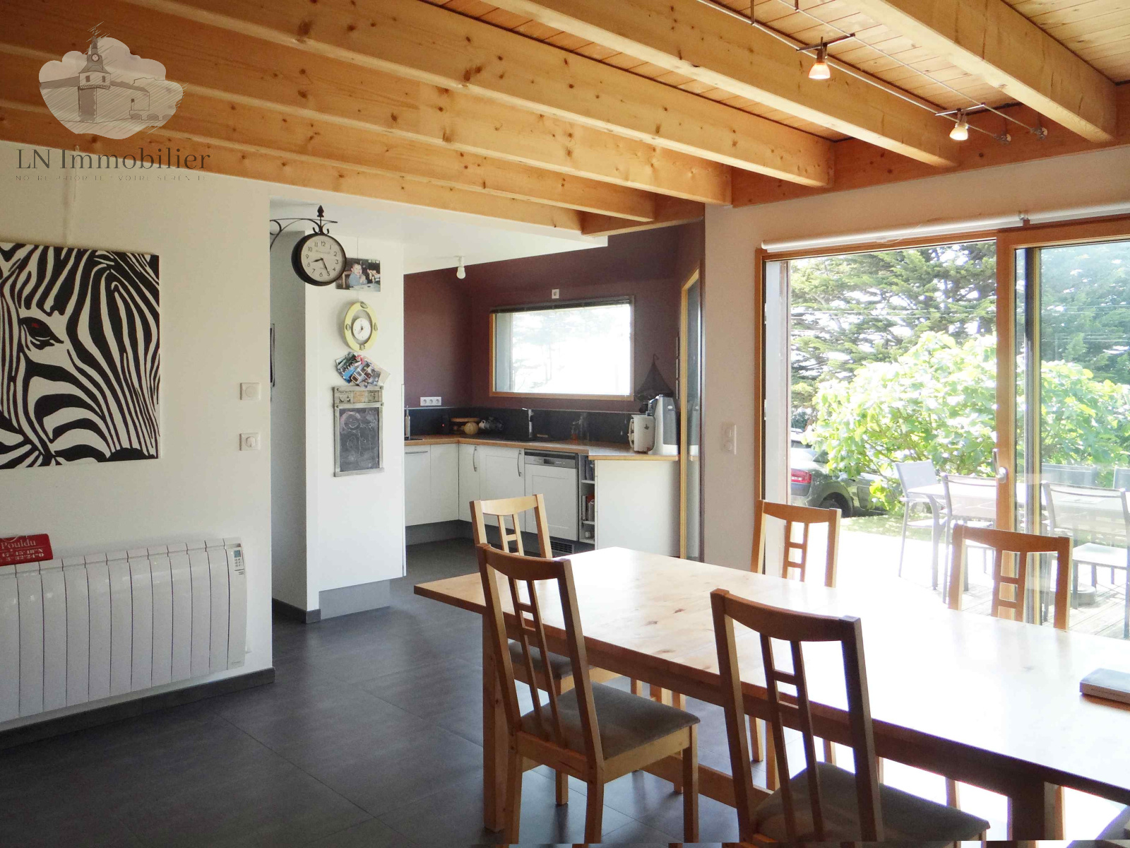 Au rez-de-chaussée, un vaste séjour-salon cuisine s'ouvre sur la terrasse au sud ; une chambre et une salle d'eau attenante.