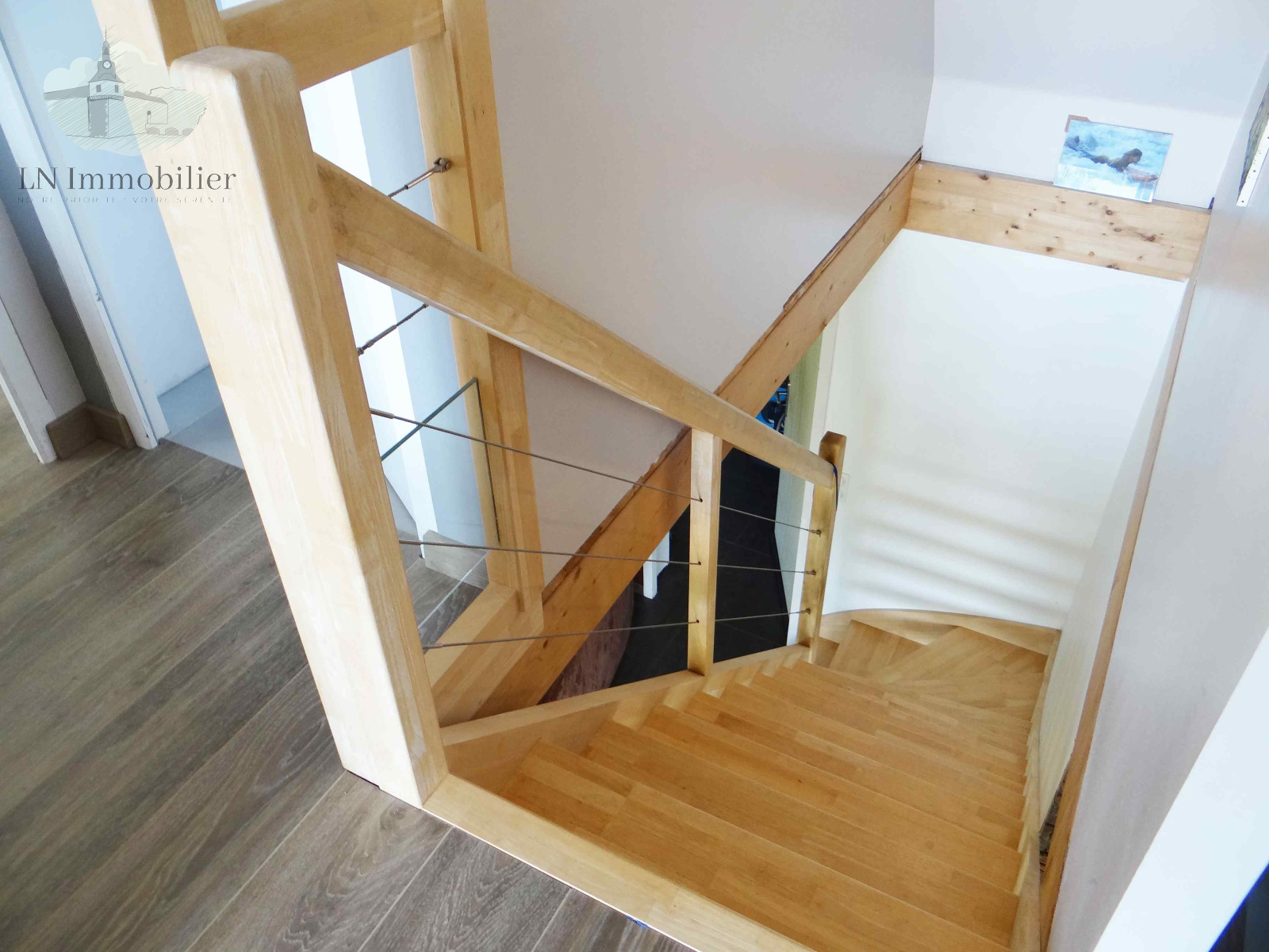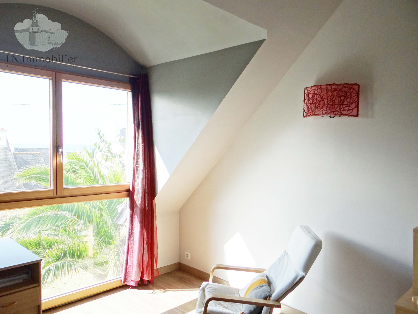 À l'étage, 3 chambres lumineuses, dont 2 avec vue mer, sont desservies par une large mezzanine à usage de bureau ; une salle de bain.