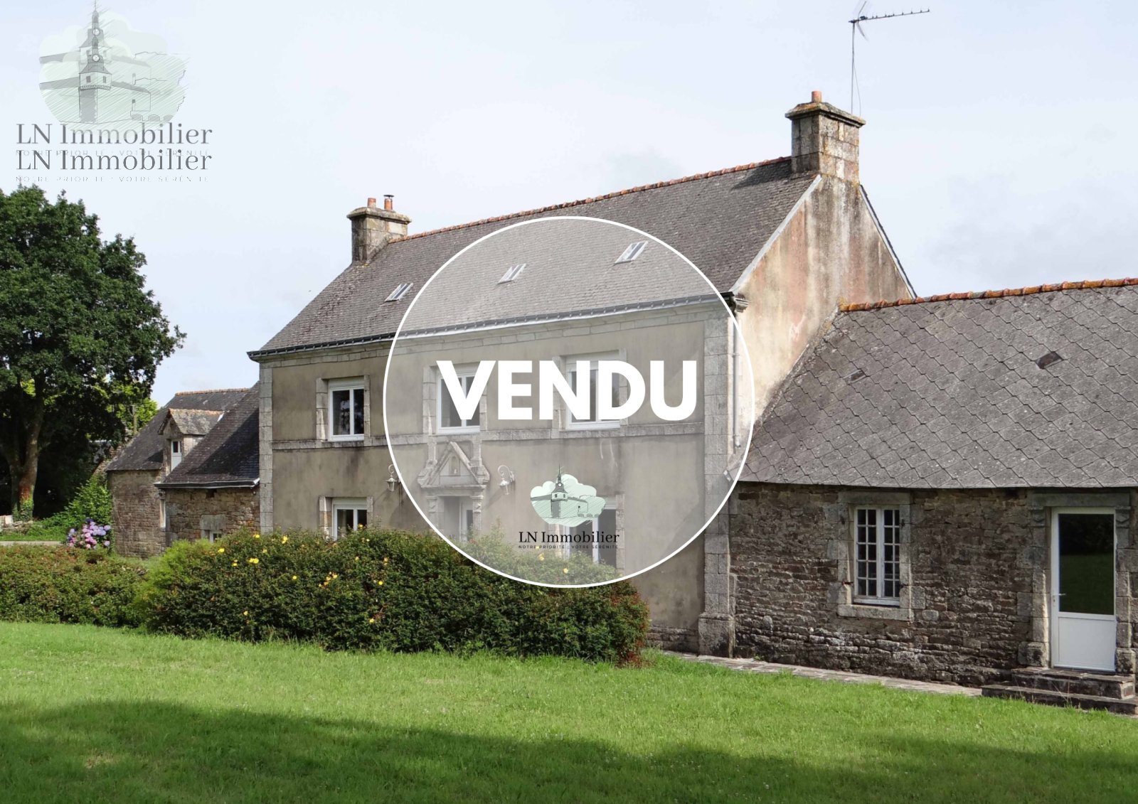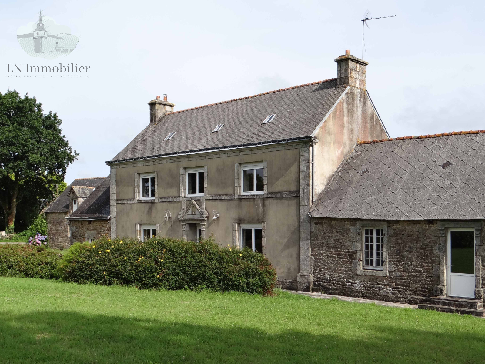 Comme un air de cottage victorien pour cette grande maison de maître-fermier, édifiée en 1869, qui a su conserver des éléments d'architecture remarquables : porche surmonté d'un fronton à l'antique, chaînages d'angles en granite taillé, corniche moulurée, cheminées à couronnements ; parc paysager au sud, serre, arbres centenaires. A l'arrière, exceptionnel verger planté d'arbres fruitiers aux multiples essences .