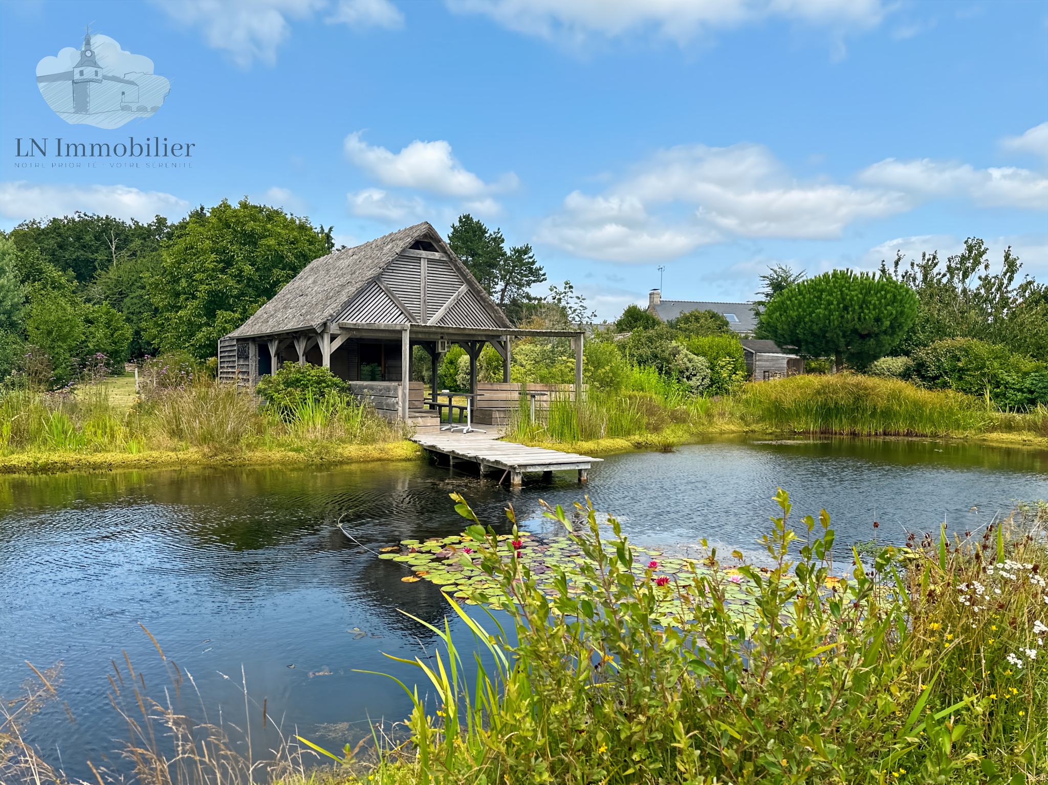 Cette propriété se compose d'une grande maison d'environ 150m² sur 3 niveaux avec une piece de vie de plus de 66 m², 4 chambres, dressing, une mezzanine une salle de bains et une salle d'eau. Attenant, un Penty de 60 m² environ, au rez-de-chaussée, séjour-salon équipé d'un poêle à bois, cuisine ouverte, salle d'eau et à l'étage une grande chambre de 20 m². En annexe sur le terrain, 2 autres espaces de vie loués en gîtes toute l'année : le cottage et la roulotte. Un préau de 40m² aménagé en salle à manger d'extérieur avec sa terrasse couverte tournée vers l' étang. Un atelier- buanderie de 25 m² viabilisé. Un abri de jardin de 16m² avec l'électricité.
