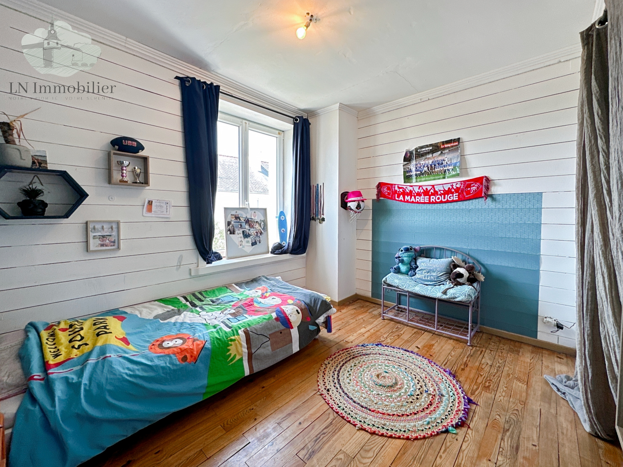En plein centre ville de Névez, à 2 minutes à pied des écoles, bus et des commerces, c'est une solide maison des années 60.